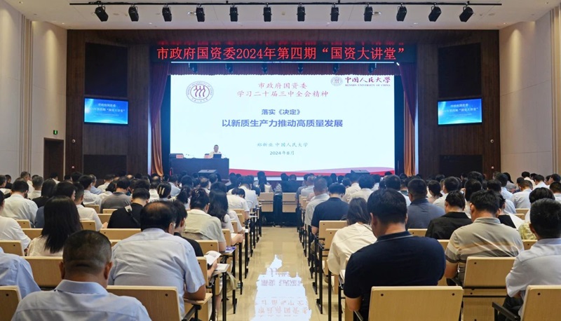 黨的二十屆三中全會擘畫了進一步全面深化改革、推進中國式現代化建設的新藍圖,黨中央、省委、市委要求切實抓好黨的二十屆三中全會精神的學習宣傳和貫徹落實。8月13日上午,市政府國資委在鄭州水務集團有限公司智慧水務中心舉辦2024年第四期“國資大講堂”,邀請中國人民大學黨委常委、副校長鄭新業教授圍繞《學習黨的二十屆三中全會精神 以新質生產力推動高質量發展》作專題輔導。