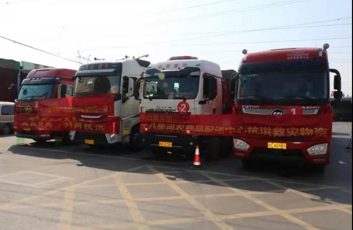 上午9時30分,13輛滿載生活急需物資的大卡車在鄭州市市場發展中心的調撥下迅速啟動,從十八里河農產品配送中心分頭向受洪汛災害影響較大的地區挺進,帶去了社會各界對鄭州災區人民群眾的深情厚誼和無限關愛。本次捐贈物資包括5000箱方便食品、30000箱礦泉水、30000箱面包、150000斤蔬菜,向受災群眾表達來自社會的愛心和鼓勵,后續中歐校友會將結合鄭州賑災實際需求,陸續向受災區域發出捐贈物資。