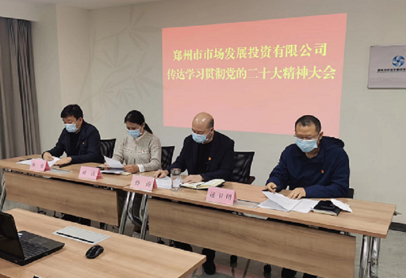 11月9日上午,鄭州市市場發展投資有限公司召開傳達學習黨的二十大精神大會。會議指出,認真學習宣傳貫徹黨的二十大精神是當前和今后一個時期的首要政治任務,要深刻領悟“兩個確立”的決定性意義,堅決做到“兩個維護”,更加緊密團結在以習近平同志為核心的黨中央周圍,以“五個牢牢把握”為重點,深刻領會和理解把握黨的二十大報告的豐富內涵和精髓要義,切實把思想和行動統一到黨的二十大精神上來,以更加昂揚的精神狀態,努力創造新的更大業績,在鄭州國家中心城市現代化建設中展現國企更大擔當。會議以視頻形式召開,公司領導班子成員,各中心、子公司主要負責人及相關人員參加會議。